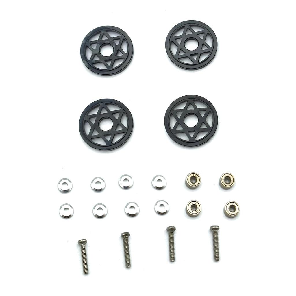 [Color Variation] Black [Set Contents] 4 aluminum rollers, mounting screws, bolts, nuts, washers (see image) Material: Aluminum alloy Size: Main part 19mm, see image for other parts