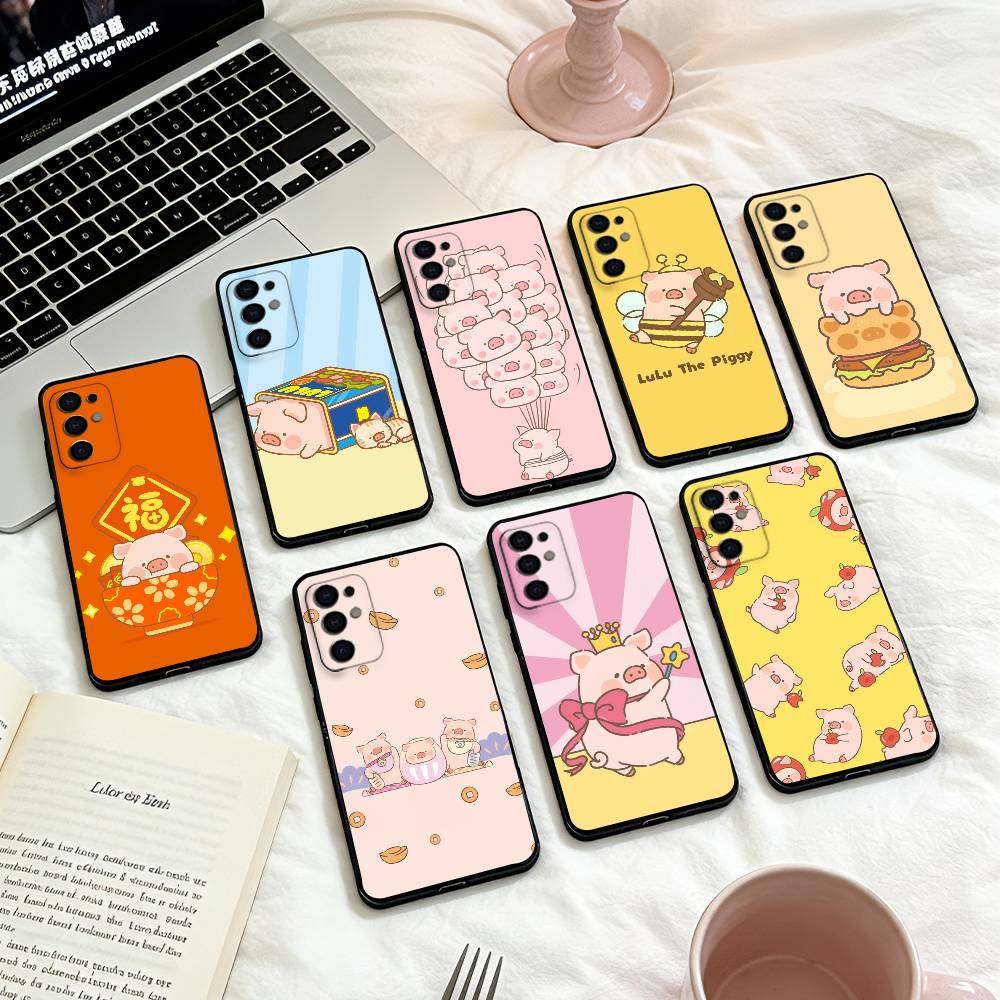 LuLu the piggy Phone Case For Samsung S25,24,23,22,30,21,10,9,Ultra,Plus,Lite,FE,4,5 G Soft Black Case