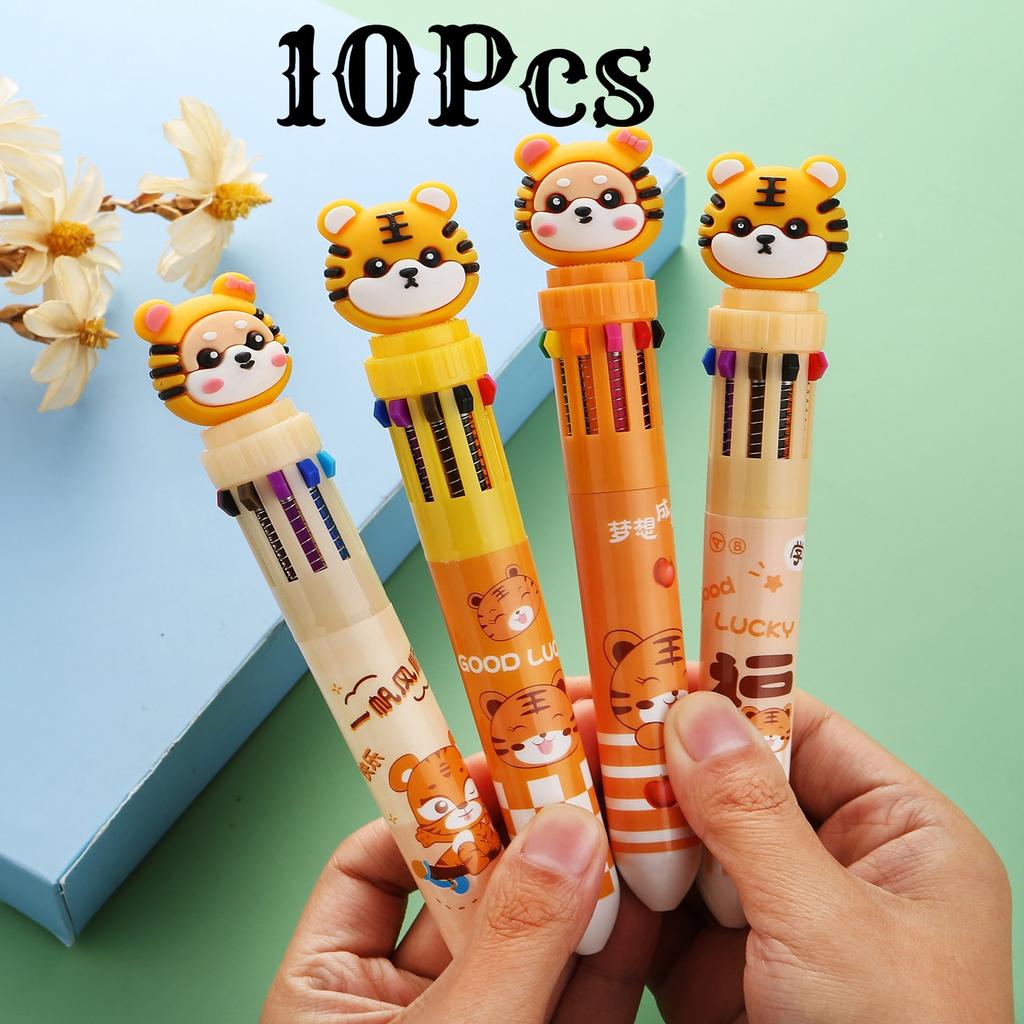 1Pcs Little Tiger Ten Color Ballpoint Pen Fluent Writing Suitable for Office Work, Brushing Questions, Signing Writing, Diaries, Notes, Student Class