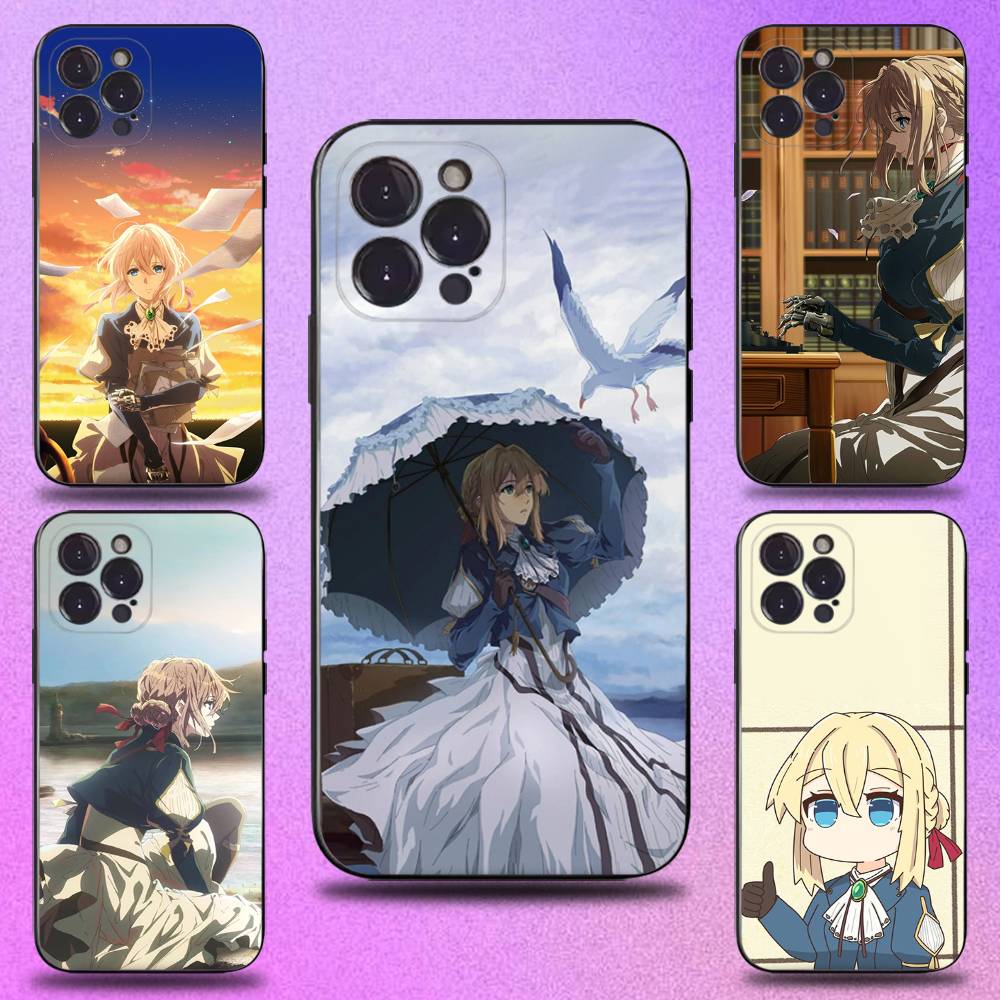 V-Violet Evergarden Anime Phone Case For iPhone 17,16,15,14,13,12,11 Plus,Pro Max,XS,X,XR,SE,Mini,8,7,Soft Silicone Black Cover