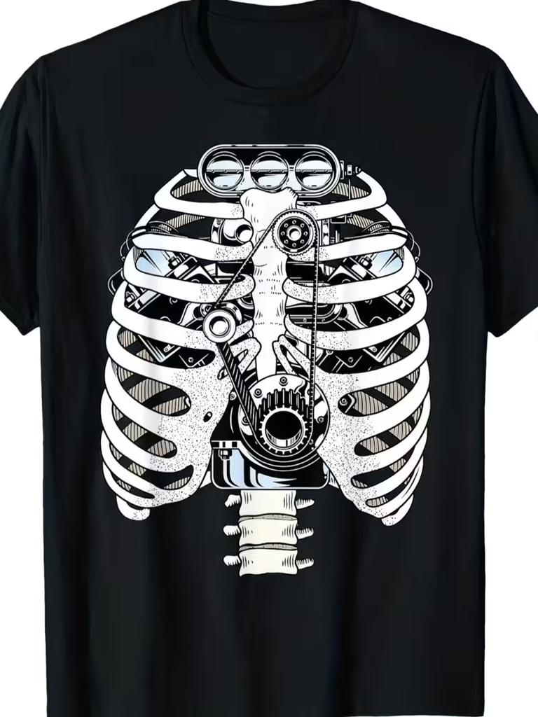 Men's Heavy Duty Mechanic T-Shirt- Car Torso Graphic T-Shirt with Ribbed Pistons for Auto Mechanics