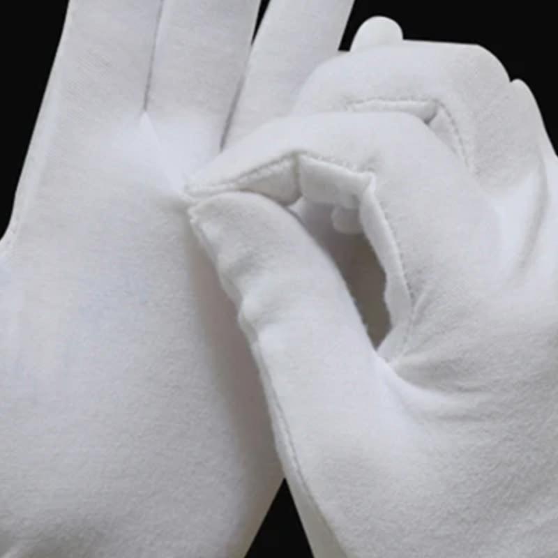 1 pár nových celoprstových pánských/ženských etiketových bílých bavlněných rukavic pro číšníky/řidiče/šperky/pracovníky, palčáky, rukavice absorbující pot