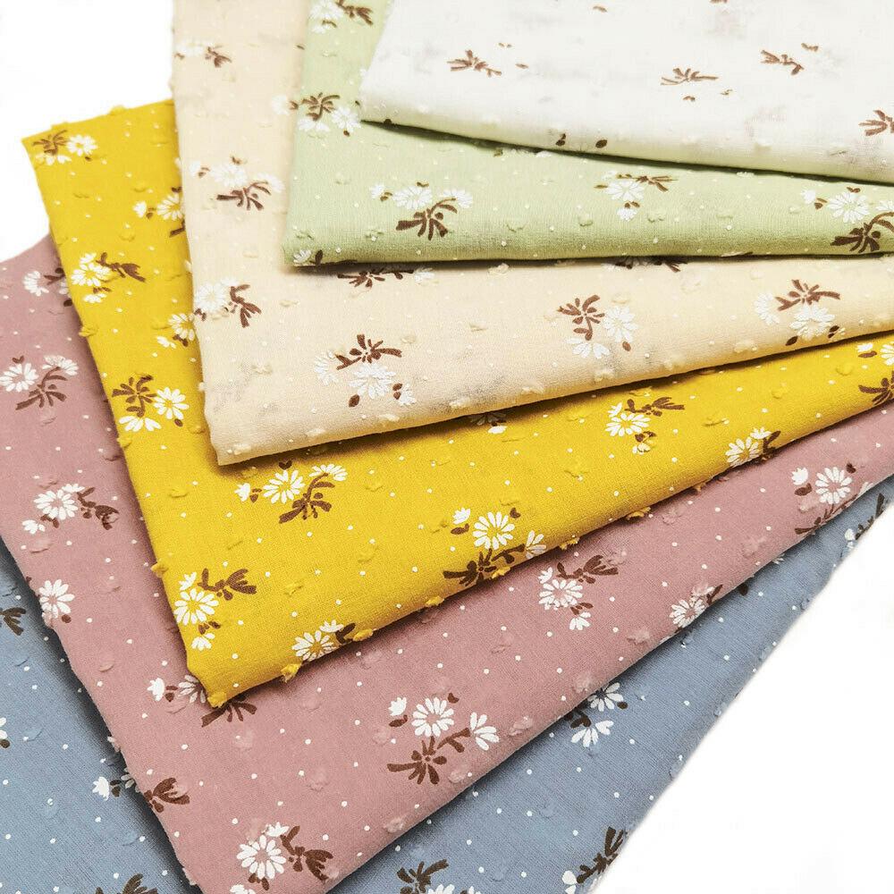 45x135CM Daisy Fresh Floral Bubble Printed Breathable Pure Cotton Fabric Diy Sewing Quilting Craft Girls Dress Skirt Clothing