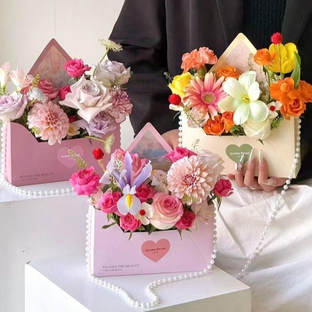 5 Pieces Portable Envelope Floral Box Romantic Gift Wrapping Box Bouquet Packaging Box Mother's Day