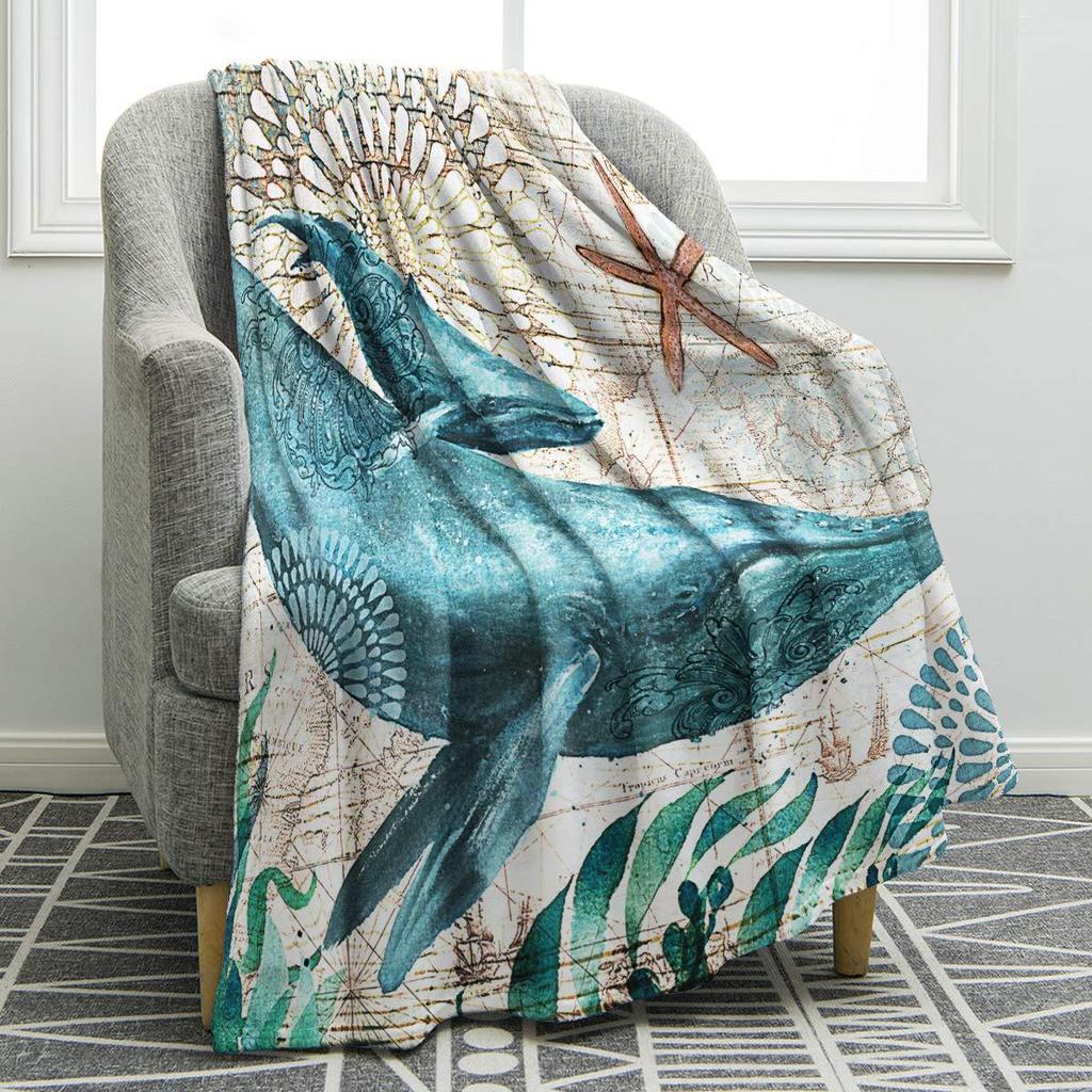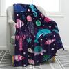 Marine animal cartoon animation digitalprinted polyester velvet flannel cover blanket Fleece soft sofa cover blankets for beds
