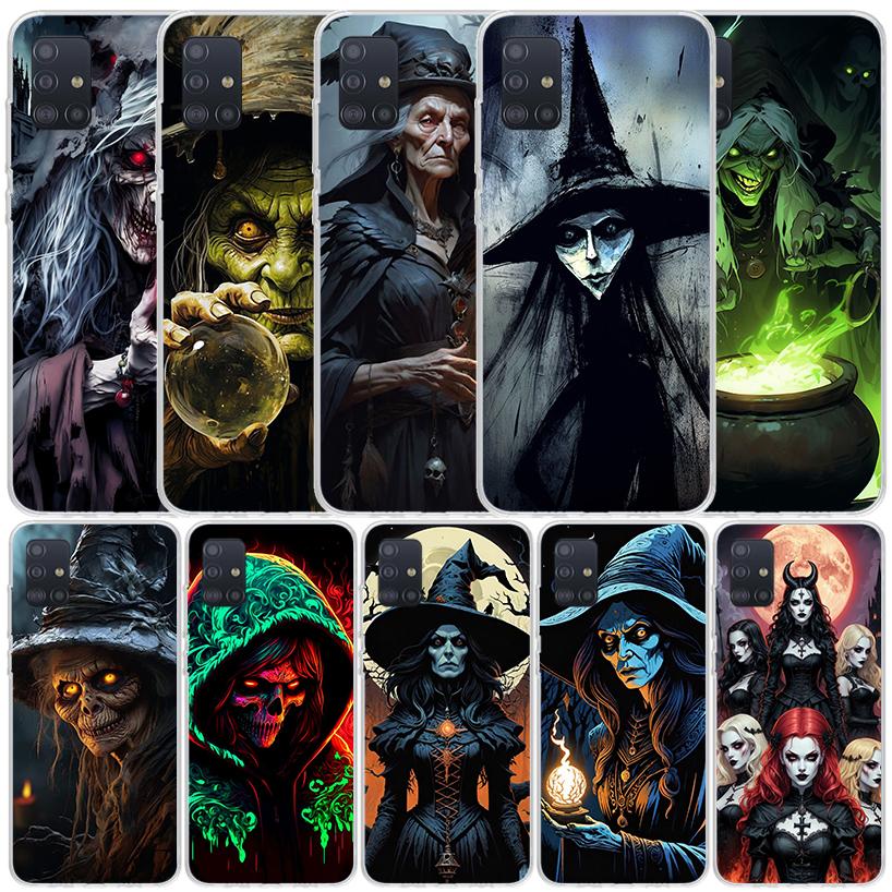 Halloween Moon Witch Horror Soft Cover for Samsung Galaxy A12 A22 A32 A52 A72 A02S Phone Case Note 20 Ultra 10 S10 Plus A51 A71