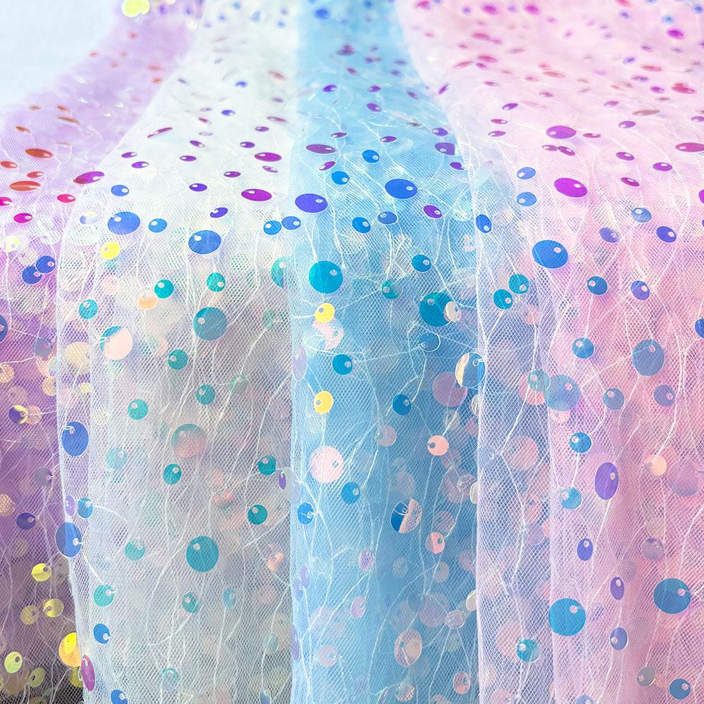 59x17.7in Glitter Multicolor Sequin Mesh Fabric Fashion Embroidery Holographic Material For DIY Wedding Party Dresses Decoration