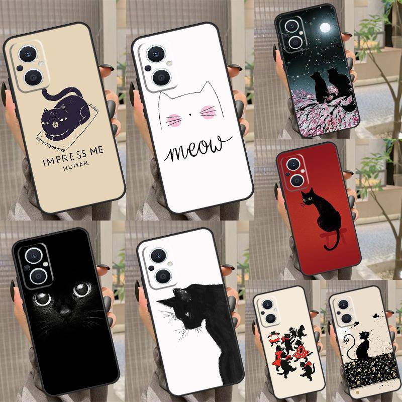 BLACK CUTE KITTY Case For OPPO Reno 8 7 Lite Reno 3 4 5 6 Lite 8T 4Z 5Z Find X5 X2 X3 Lite Neo X6 Pro Cover