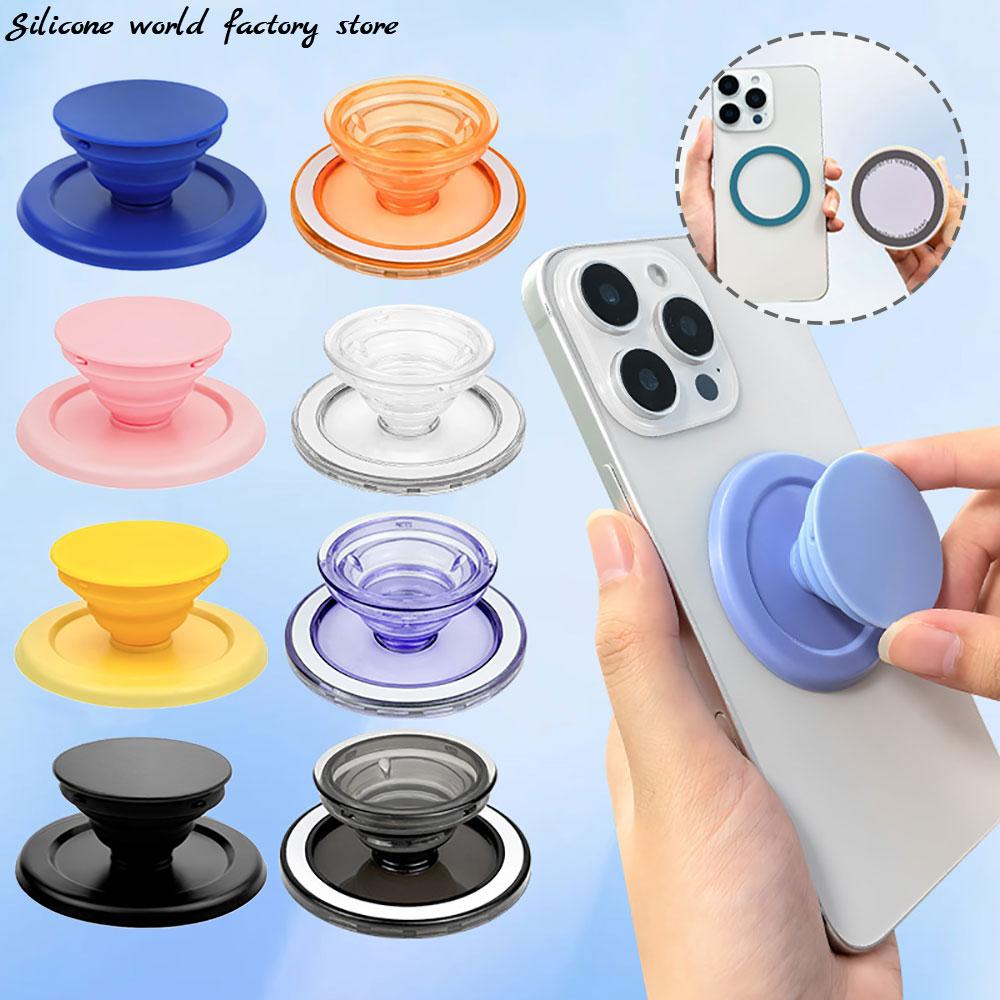 Silicone World Magnetic Folding Mobile Phone Grip Holder Socket Support for Magsafe Ring Finger Expanding Stand Portable Bracket