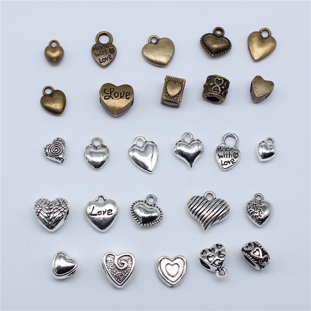 10pcs Heart Charms For Jewelry Making Antique Bronze Silver Color DIY Crafts Making Findings Handmade Tibetan Jewelry