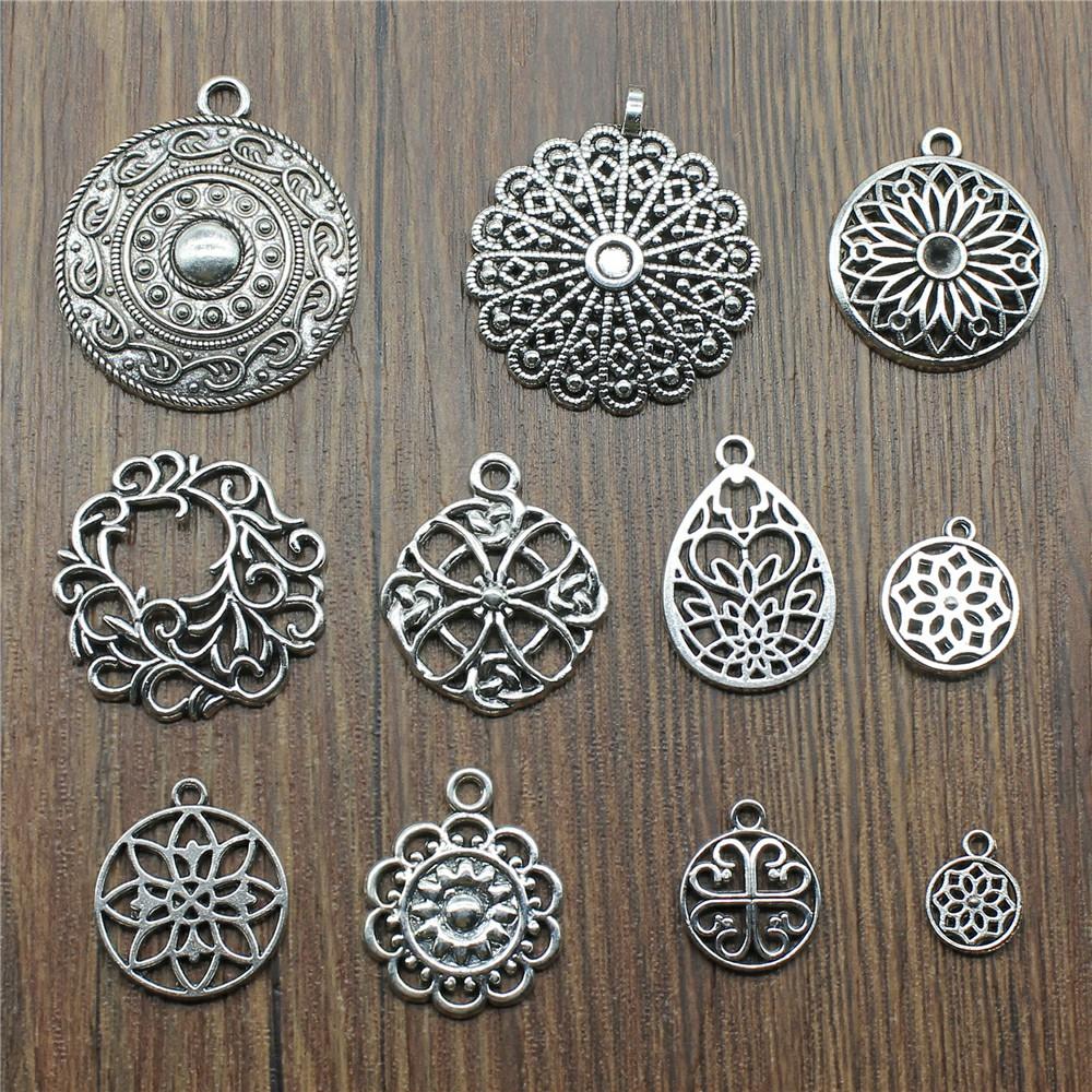 10pcs Charms Motif Antique Silver Color Motif Pendant Charms Flower Charms For Jewelry Making