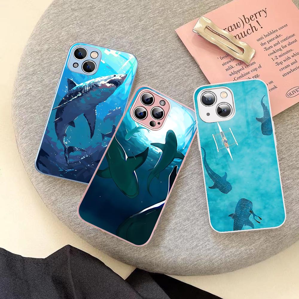 Fashion Trend Animal Sharks Phone Case Tempered Glass For Iphone 14 13 12 11 Pro Mini XS MAX 14Plus X XS XR Fundas