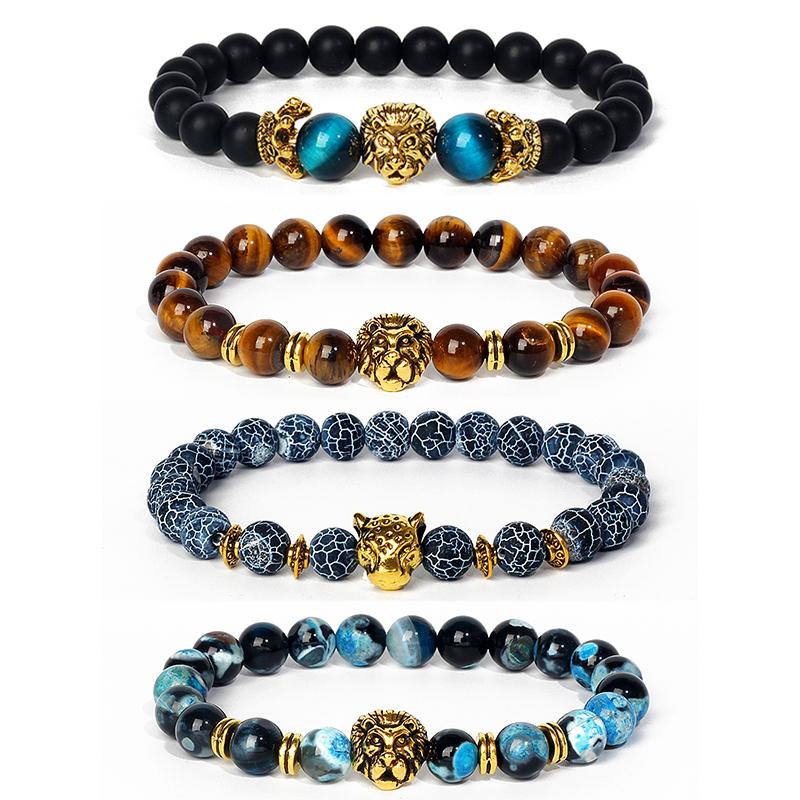 Lion Leopard Charm Bracelets Men Nature Tiger Eye Lava Stone Oil Heal Anxiety Aromatherapy Bracelets for Women Diffuser Jewelry