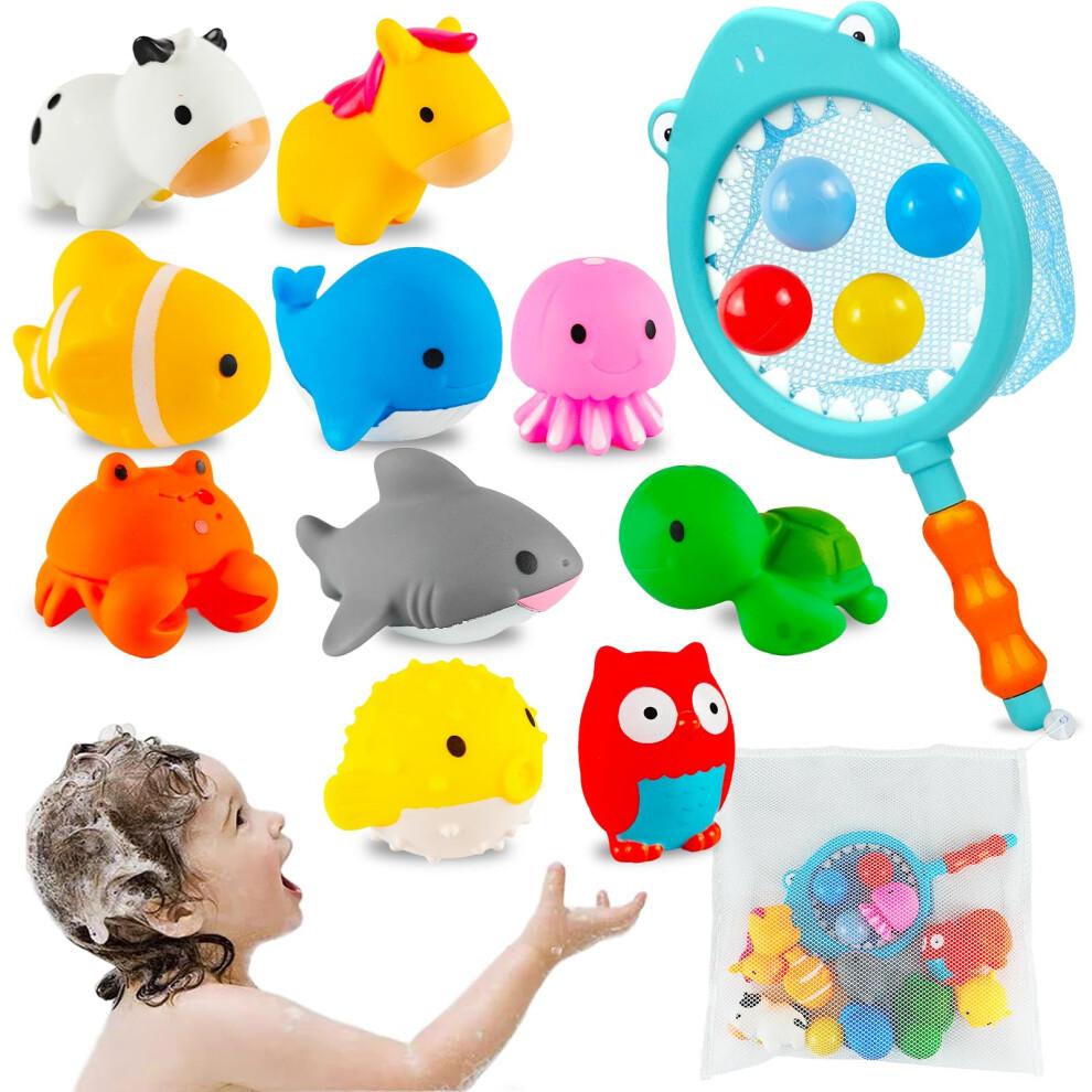 16pcs Baby Bath Toys Set with 10 Bath Squirt Toys, 1 Net, 1 bath toy storage net bag, 4 play balls, Baby Bath Tub Toys Paddling Pool Toys Water Toys