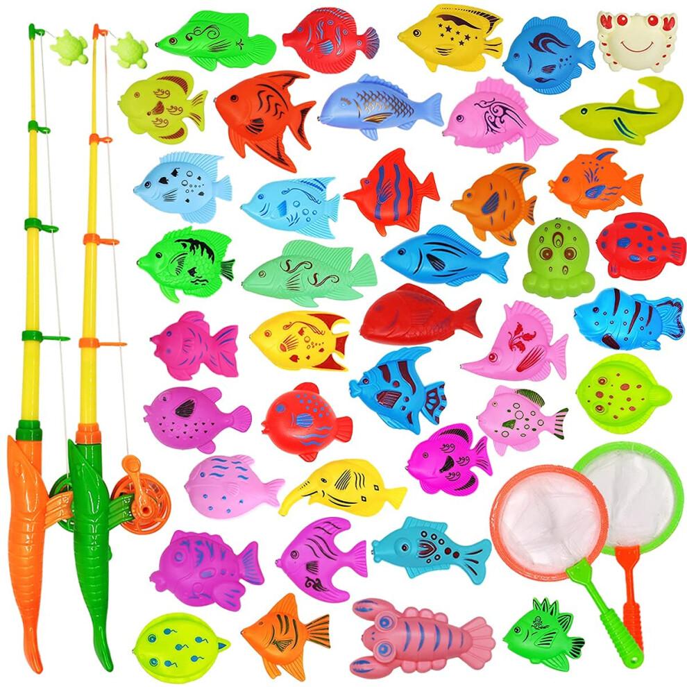 Magnetic Fishing Game Bath Toys for Kids with Poles Nets and 40 Floating Ocean Animals