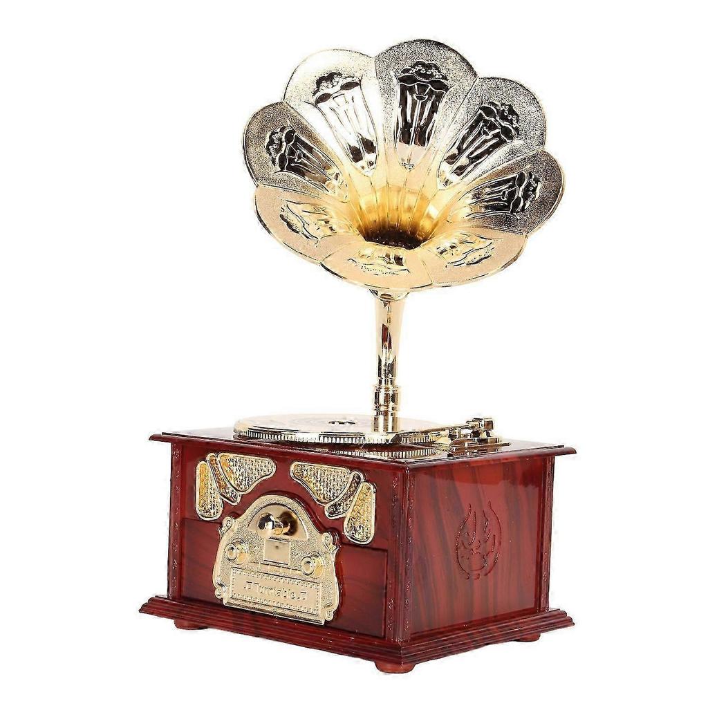 Phonograph Music Box Vintage Wood Grain European Style Exquisite Musical Box for Bars Cafes Bedrooms