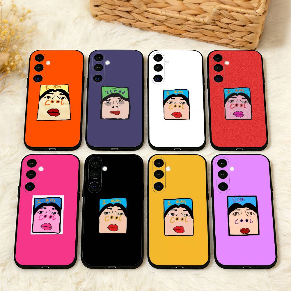 1PC F-Funny E-Exaggerated Face Emotion Phone Case For Samsung A73,72,71,A52,51,40,41,A22,A32,31,A13, Soft Black Shell