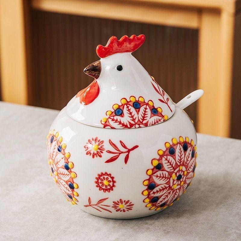 Creative Rooster Ceramic Spice Jar, Large Capacity Seasoning Container, Kitchen Storage & Pepper Holder