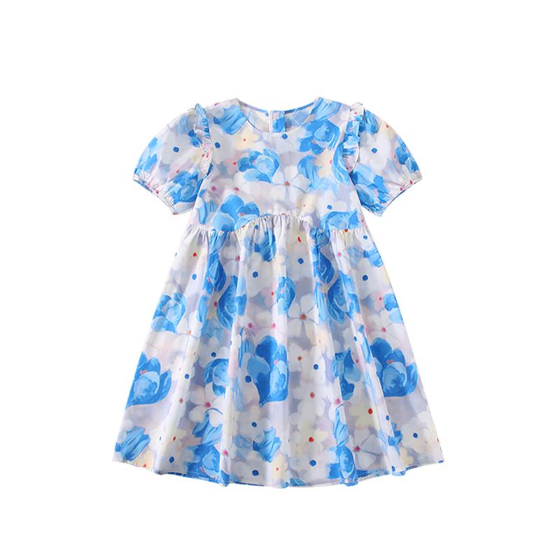 Classic Teddy Girls' French Floral Short Sleeve Princess Dress