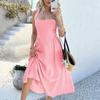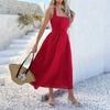 2025 Spring/Summer European and American Amazon Casual Resort Style Solid Color High-Waisted Sleeveless Halter Dress for Women