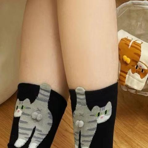 1/2 pár Kreslené Roztomilé Kočičí Koule Bavlněné Ponožky Kawaii Lolita Pletené Ponožky Ženy Dívky Středně Vysoké Ponožky Potisk Kočičího Zadečku Pár Ponožek