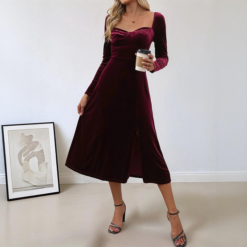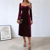 Nový Styl Elegantní Retro Styl Rozparek Samet Jednobarevný Čtvercový Výstřih Večerní Šaty