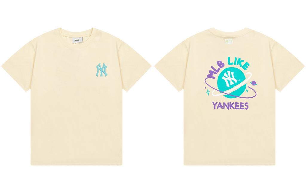 MLB & NY Large Logo Printed Short Sleeve T-shirt Apricot 903