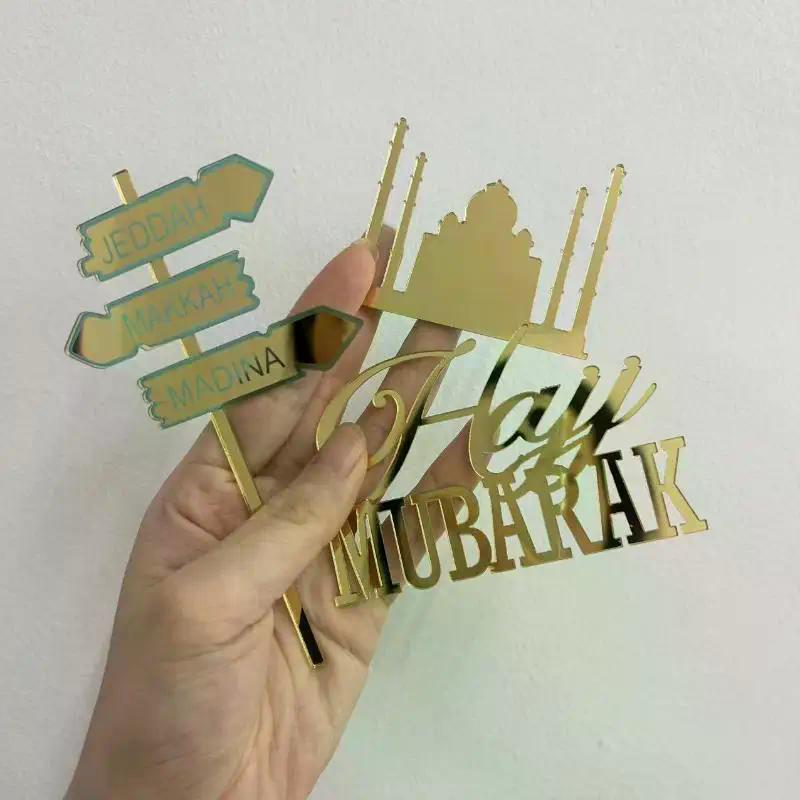 Personalizovaný nápisový topper na dort Umrah Mubarak Hajj Mubarak Zlatá barva Akrylová dekorace na dort Ozdoby na narozeninový dort
