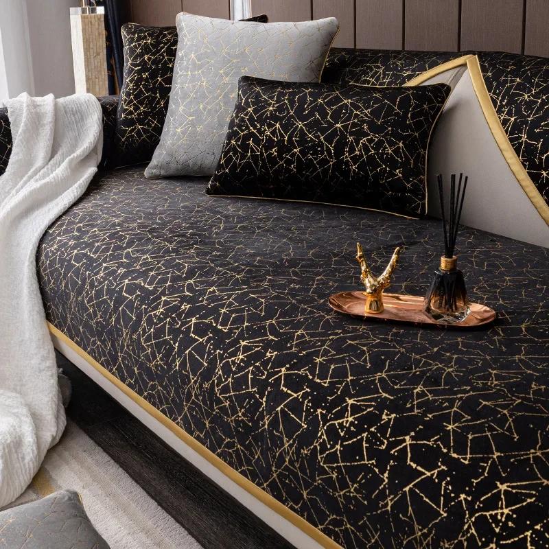 Univerzální kožený potah na pohovku se zlatým lemem, moderní vysoce kvalitní polštář na pohovku, protiskluzová podložka na židli, saténový lem, potah na křeslo, ručník
