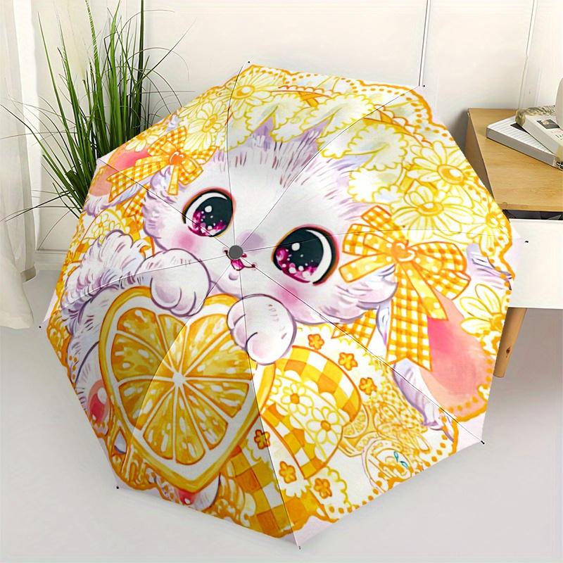1pc Orange Kitten Ideas Automatic Open/CloseCartoon Umbrella-CuteUmbrella with Cute Design, Portable 3-Fold Compact Umbrella for Men & Women