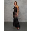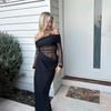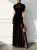 JY25022 Cowl Neck Backless Mesh Dress - European & American Style, Sexy Slim Fit, Long Spring 2025 Fashion