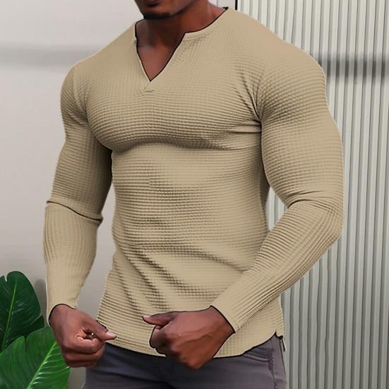 Podzim Jaro Pánské Top V Výstřih Jednobarevné Slim Fit Měkké Ležérní Dlouhé rukávy Patchwork Waffle Textura Elastické Pánské tričko střední délky