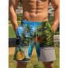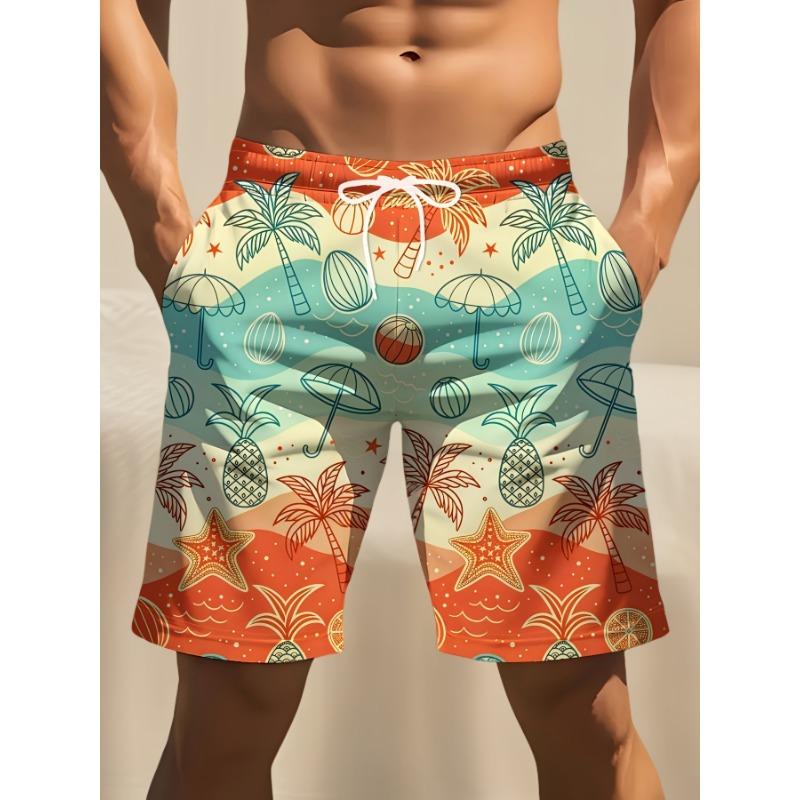 Men's Hawaiian Tropical Print Beach Shorts Palm Tree Pineapple Starfish Drawstring Waist Quick Dry Swim Trunks
