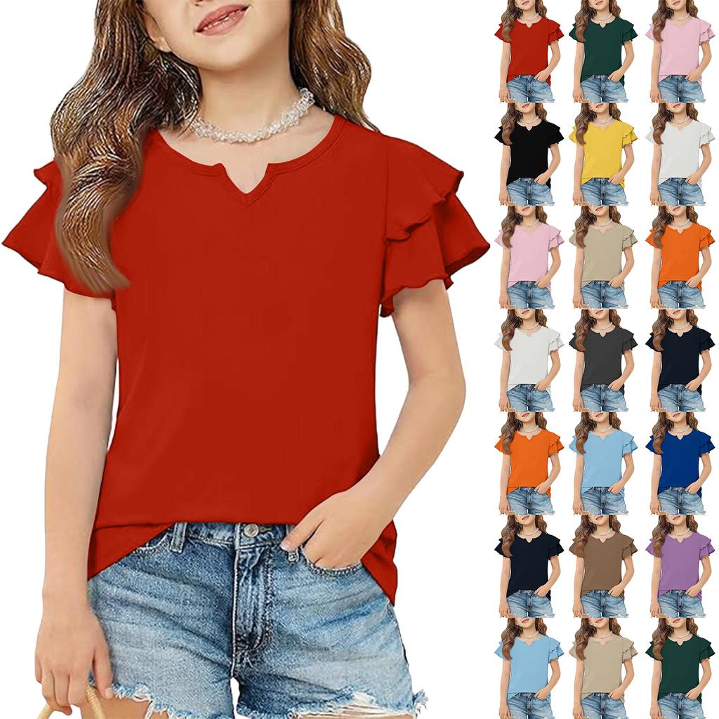 Girls' V-Neck Ruffle Tee - Short Sleeve Summer Blouse
