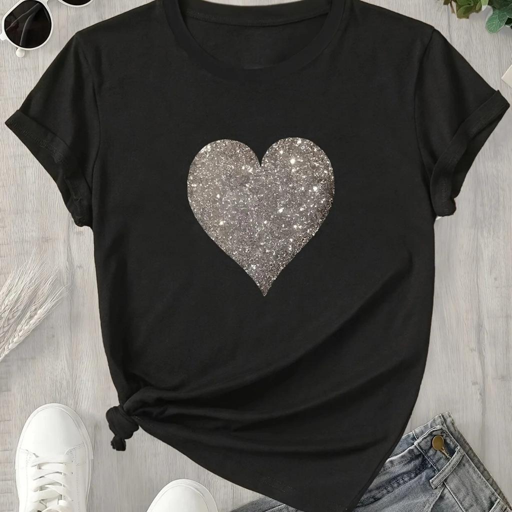 2025 New Short Sleeve T-Shirt A Heart Pattern Print Perfect for Casual Wear Summer Short Sleeved Harajuku Streetwear Tops