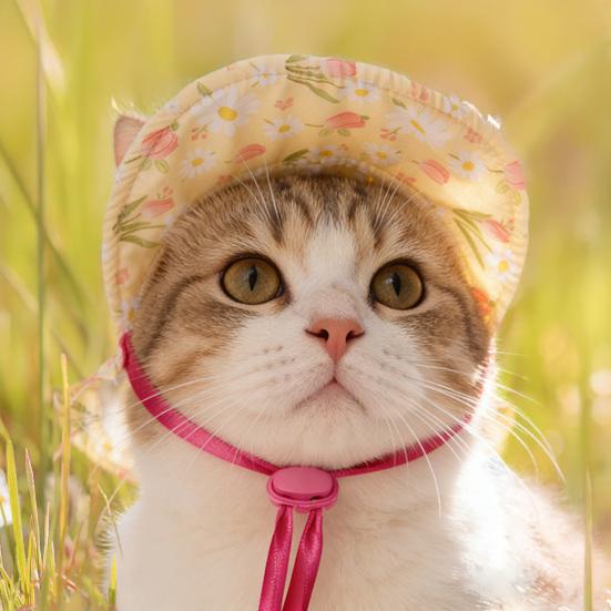 Charming Fresh Floral Designs for Stylish Looks: Featuring a variety of vibrant floral patterns, this hat instantly adds a pastoral and adorable touch to your pet’s appearance. Perfect for everyday wear or photo sessions, it transforms your furry friend into a picture-perfect companion with a natural, charming vibe.