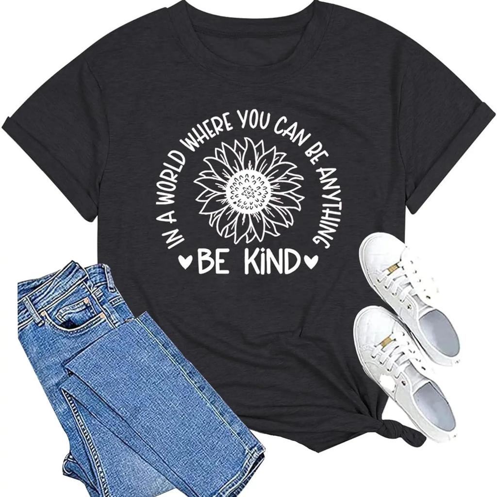 Be Kind Shirt Women in A World Where You Can Be Anything Be Kind T-Shirt Funny Inspirational Teacher Tees Tops
