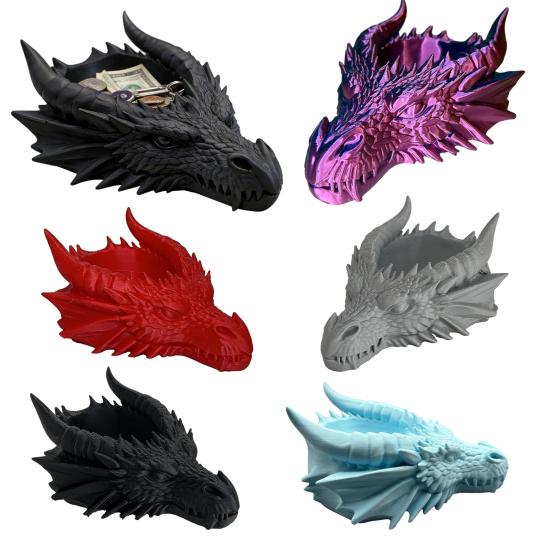 Unique 3D Printed Dragon Head Design: Featuring a meticulously crafted 3D printed dragon head, this tray serves as both a functional organizer and an eye-catching decorative piece. The fine details highlight superb craftsmanship, making it an ideal display item for dragon enthusiasts and art lovers seeking to add personality to their space.