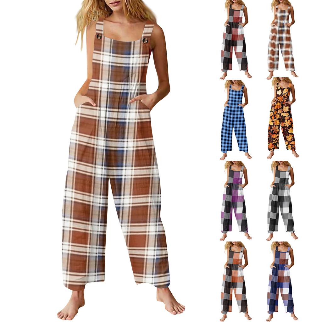 Women's Casual Retro Printed Jumpsuit Sleeveless Cotton Jumpsuit