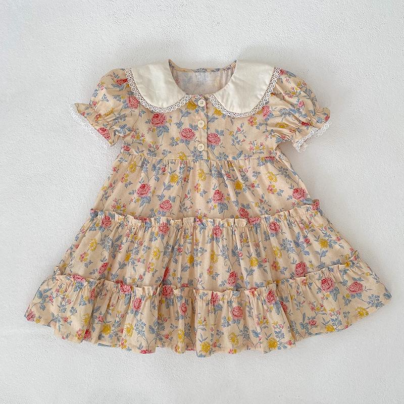 Girls' Summer Dress With New Floral Print And Doll Collar Stylish Dress For Young Girls
