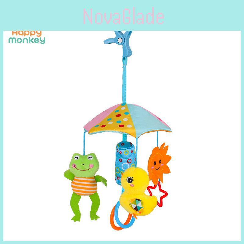 The infant musical rotating bed mobile and stroller toy features soft plush materials for gentle sensory stimulation and visual engagement, it supports auditory and tactile development through colorful hanging animal figures. Ideal for calming infants and encouraging curiosity during playtime or naptime, it can be easily suspended on cribs or strollers. Wipe clean with a damp cloth for maintenance.