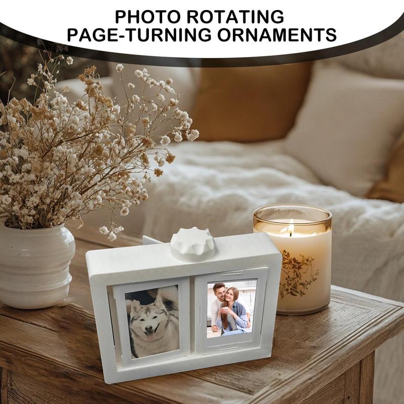 Photo Frame Rotating Photo Album 360 Degree Hand Crank Turning Ornaments Table Decoration 12-Card Holder For Home Fathers Day