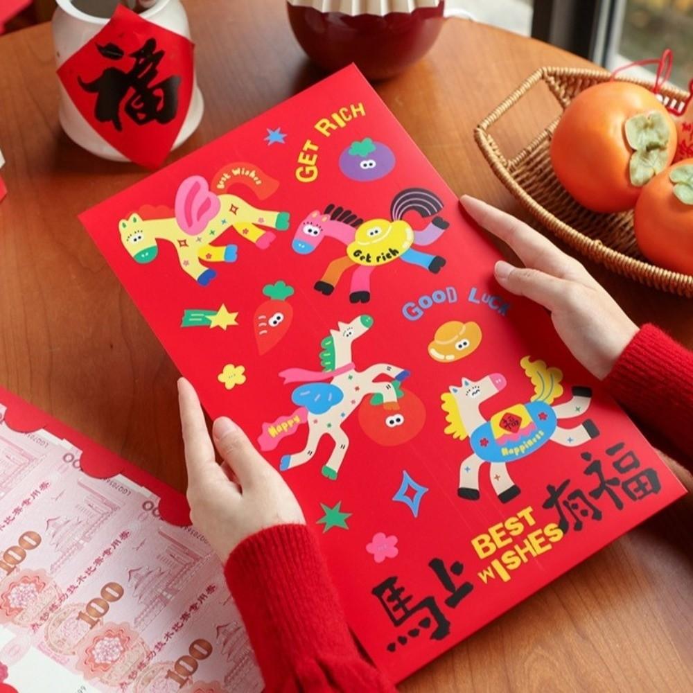 Universal Blessing New Year Red Envelope Cartoon Traditional Horse Year Money Envelope Thickened Paper Gift Bags Kids Gift