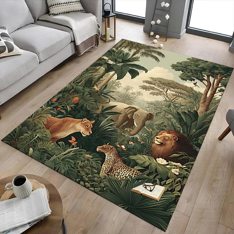 1PC jungle animals Non-Slip Floor Carpet Compatible for Office&Living Room&Bedroom&Dining room - Flat - Weave Machine-S0341