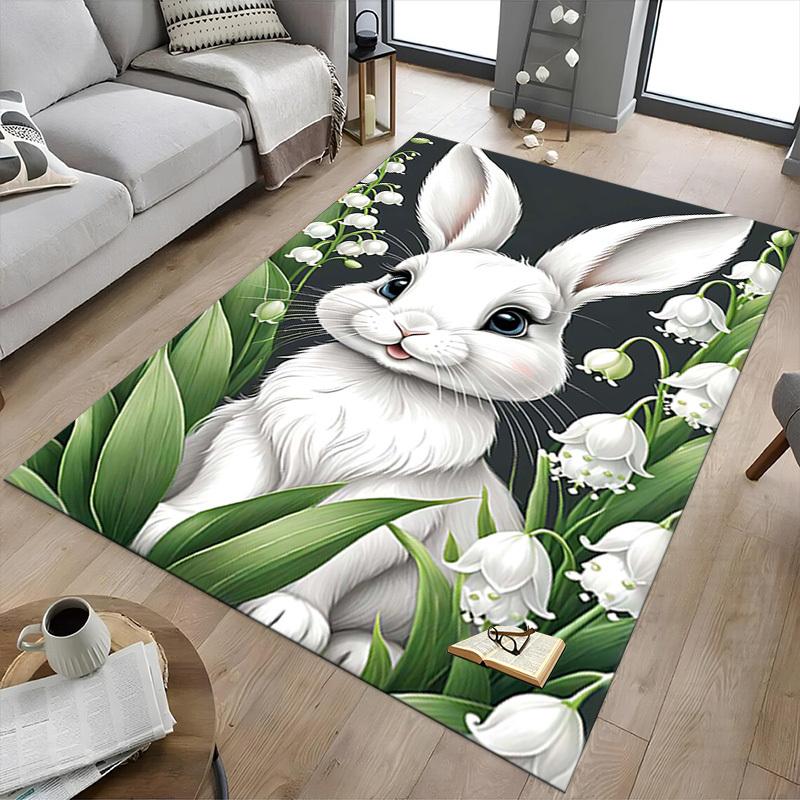 1PC rabbit flowers Non-Slip Floor Carpet Compatible for Office&Living Room&Bedroom&Dining room - Flat - Weave Machine-S0316