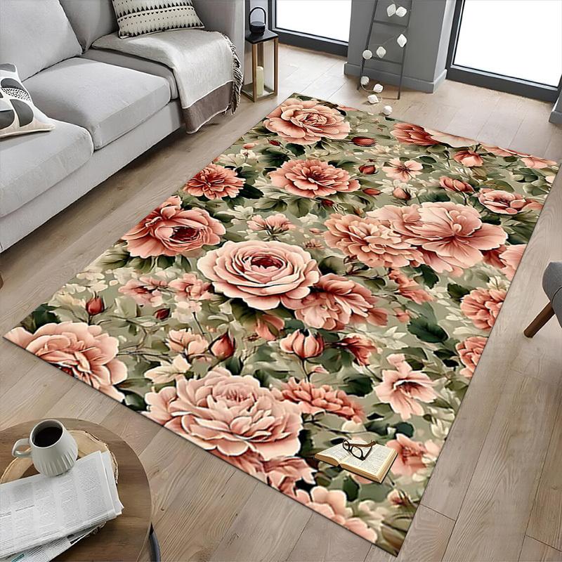 1PC Floral Pattern Non-Slip Floor Carpet Compatible for Office&Living Room&Dining room - Flat-Weave Machine- Soft & Pattern-E242