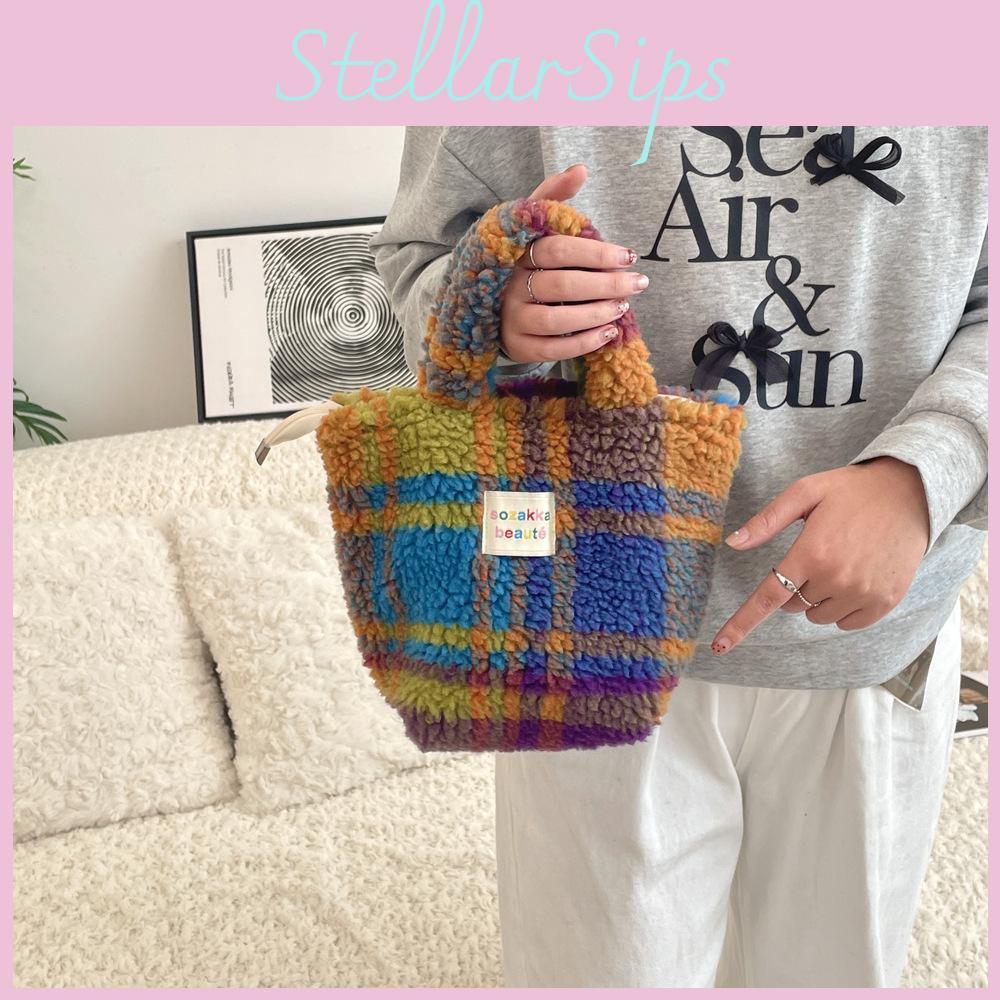 Crafted from high-quality plush material, this lunch tote is not just visually appealing but also luxuriously soft to the touch. The plush exterior lends a cozy feel thats ideal for the winter months, while the sturdy yet soft construction ensures that your lunch is kept safe and secure. The interior features a smooth and durable satin fabric lining, making it easy to clean and maintain. With a spacious middle size, this tote bag offers ample room for containers, snacks, and even a water bottle, ensuring that you have everything you need for a delightful meal on the go.