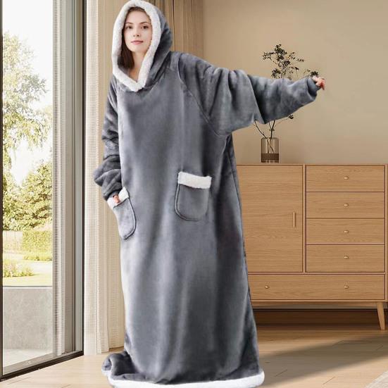 Nositelná deka mikina pro dospělé ženy muže nadrozměrná sherpa fleecová mikina deka útulná plyšová flanelová noční košile s kapsami