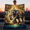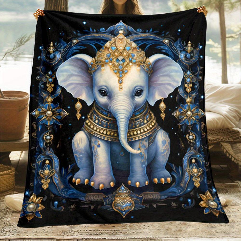 1pc Blue Elephant Crown Jewelry Royal Indian Art Fleece Blanket Elegant Design Soft Plush Throw For Home Decor Gift Idea