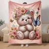 Glowing Bear Heart Butterfly Fleece Blanket Soft Flannel Throw Bedding Gift for Kids Teenagers Animal Lover Home Decoration Art